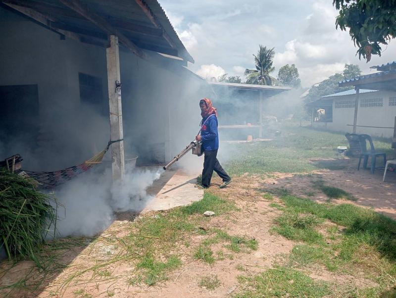 พ่นหมอกควันกำจัดยุงลาย ตามโครงการฉีดพ่นหมอกควันกำจัดยุงลาย ประจำปีงบประมาณ พ.ศ 2566