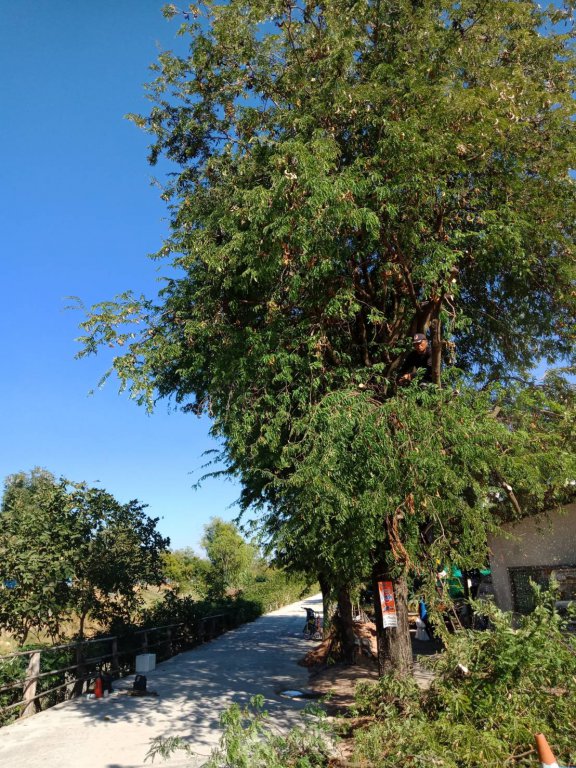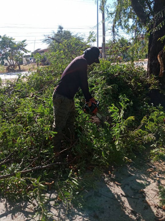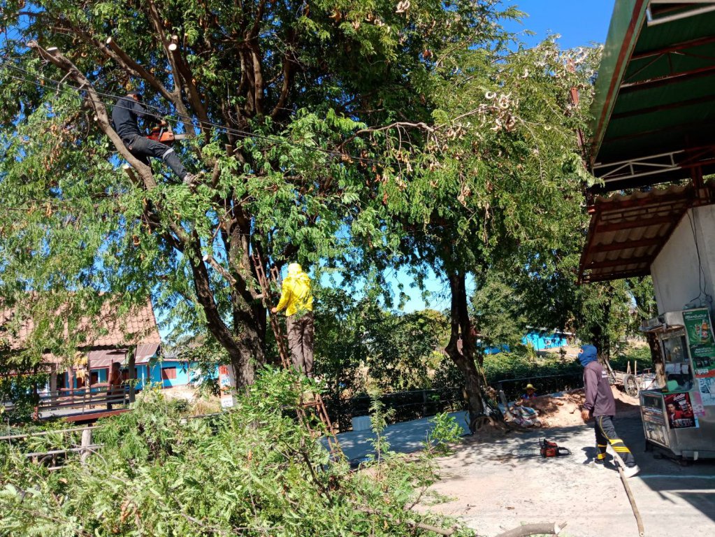 ตัดกิ่งไม้ที่กีดขวางบริเวณทางเข้าวัดป่ากุง