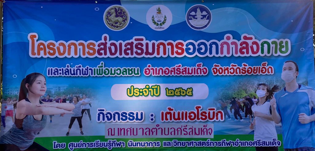 รายละเอียด : วันที่ 12 มกราคม 2565 เทศบาลตำบลศรีสมเด็จร่วมกับศูนย์การเรียนรู้กีฬานันทนาการและวิทยาศาสตร์การกีฬาศรีสมเด็จ ร่วมออกกำลังกายตามโครงการส่งเสริมออกกำลังกายและกีฬาเพื่อมวลชน 2565 เพื่อส่งเสริมสนับสนุนให้ออกกำลังกายร่วมกันอย่างมีความสุข โดยมีนายกเทศมนตรีตำบลศรีสมเด็จเป็นประธานเปิดโครงการและมี นายจิราวัฒ มูลแวง ตำแหน่งเจ้าหน้าที่พละศึกษาประจำอำเภอศรีสมเด็จ เป็นผู้นำเต้นในครั้งนี้