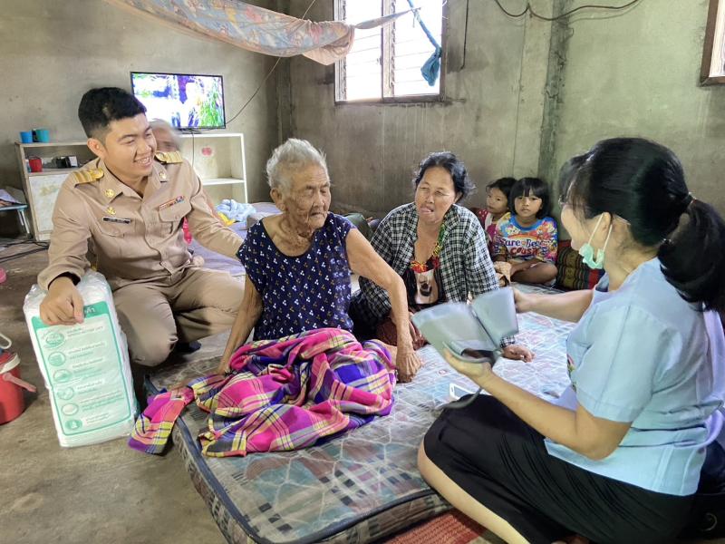 ตรวจสุขภาพผู้พิการและเยี่ยมผู้ป่วยติดบ้านติดเตียงและมอบแพมเพิส อาหารเสริมนม และแผ่นรองซับให้กับผู้ป่วยติดเตียง หมู่ที่ 3 ,13 บ้านก่อ บ้านเหล่าล้อ หมู่ที่ 4 และบ้านโคกข่า หมู่ที่ 5