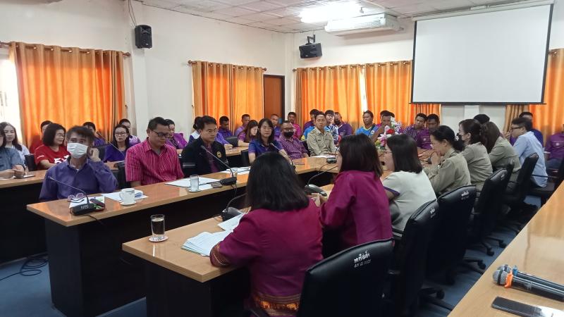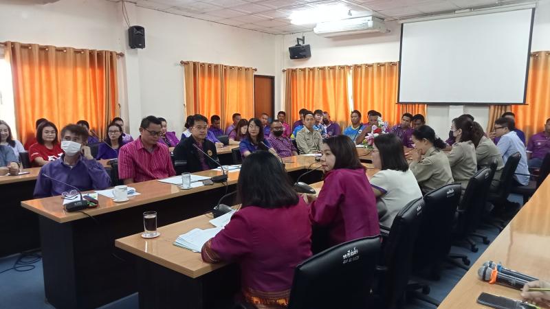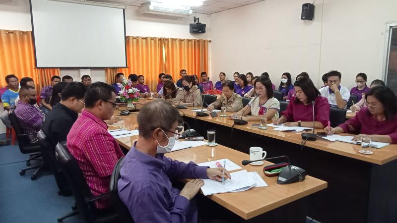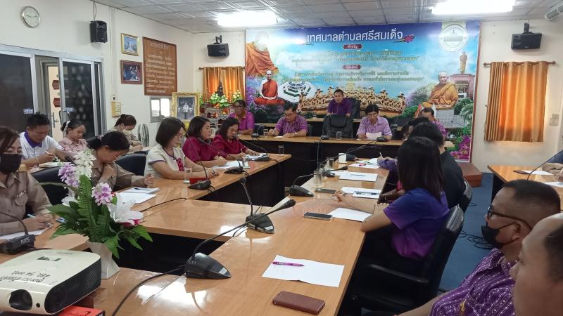 นายอรัญย์ เจริญนนท์ นายกเทศมนตรีตำบลศรีสมเด็จ ประธานในที่ประชุม ประจำเดือน กันยายน 2566 เพื่อมอบนโยบายให้แก่ หัวหน้าส่วนราชการ พนักงานเทศบาล พนักงานจ้างตามภารกิจ และจ้างเหมาบริการ ในสังกัดเทศบาลตำบลศรีสมเด็จ