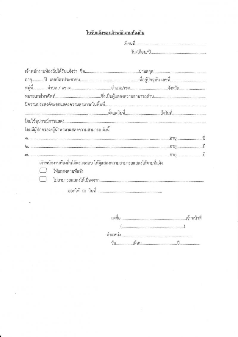 * เอกสารที่ต้องใช้ในการแจ้งแสดงความสามารถ