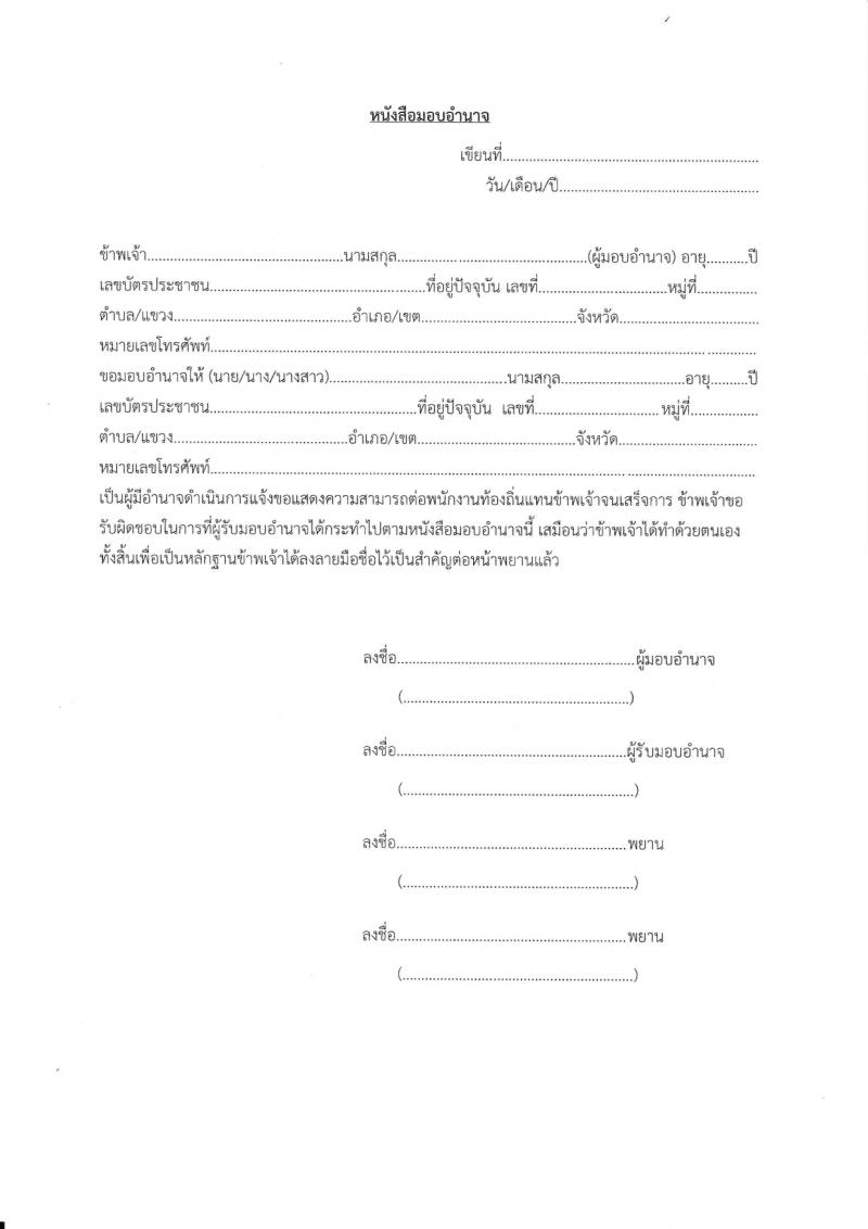 - สำเนาบัตรประจำตัวประชาชนของผู้มอบอำนาจ