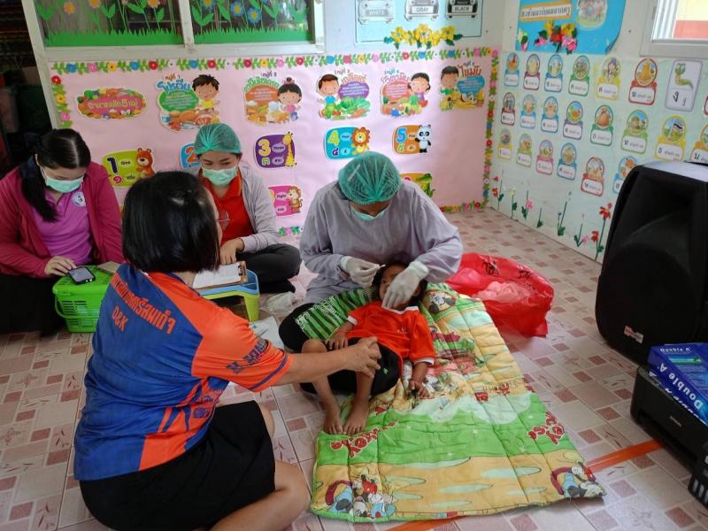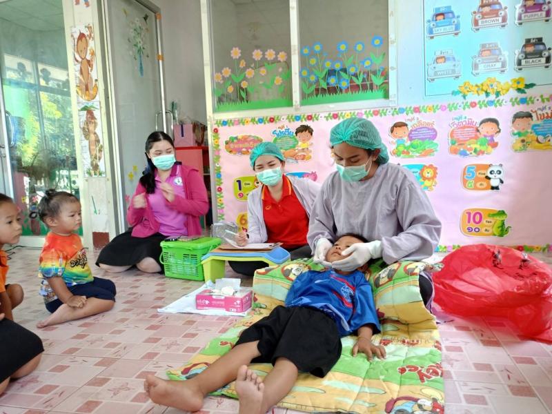 ตรวจสุขภาพช่องปากและทาฟลูออไรด์วานิชให้กับศูนย์พัฒนาเด็กเล็กบ้านหนองสองห้อง