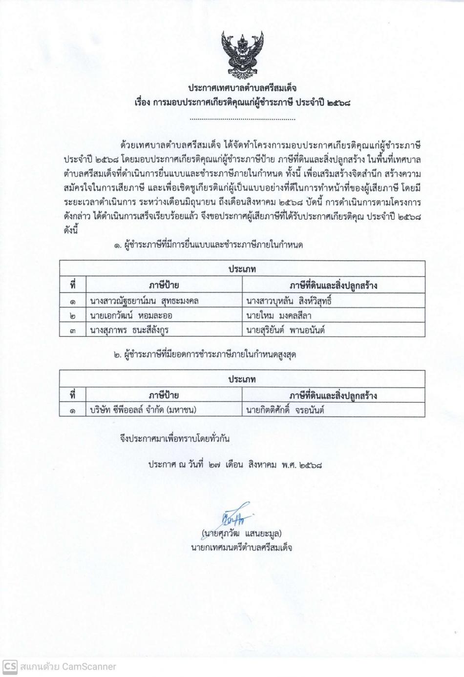 มอบใบประกาศเกียรติคุณแก่ผู้ชำระภาษี ตามโครงการมอบประกาศเกียรติคุณแก่ผู้ชำระภาษี ประจำปี 2568