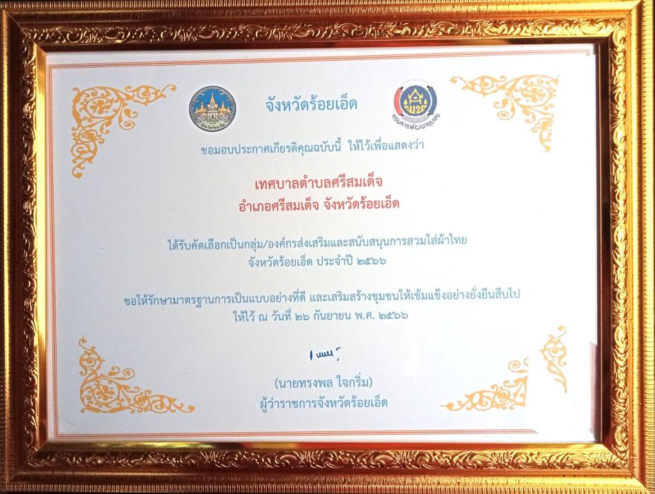 รับใบประกาศการส่งเสริมและสนับสนุนการใช้และสวมใส่ผ้าไทย ตามโครงการเชิดชูเกียรติคน พช.101 ประจำปี พ.ศ.2566 [26 กันยายน 2566]