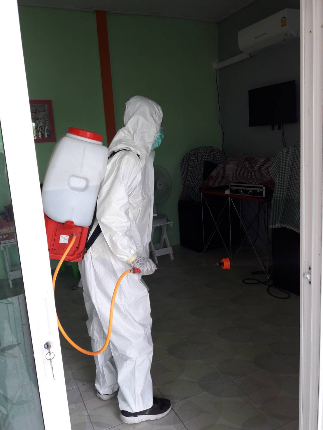 งานสาธารณสุขและสิ่งแวดล้อมพื้นที่ฉีดพ่นยาฆ่าเชื้อเพื่อป้องกันและควบคุมการแพร่ระบาดของโรคติดเชื้อไวรัสโคโรนา 2019