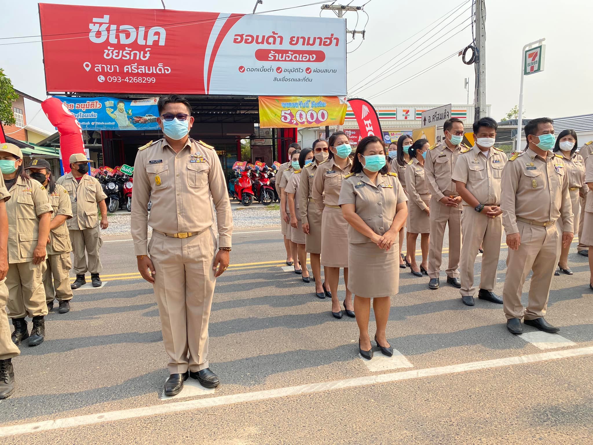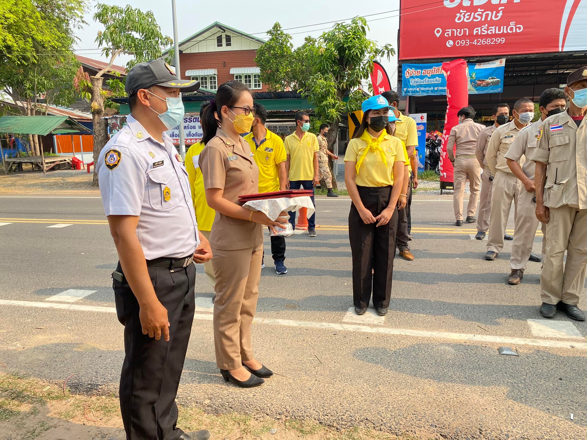 วันจันทร์ที่ 11 เมษายน 2565 นายกเทศมนตรีตำบลศรีสมเด็จ พร้อมคณะผู้บริหาร ผู้นำชุมชน ปลัดเทศบาล รองปลัดเทศบาล หัวหน้าส่วนราชการ พนักงานเทศบาล พนักงานจ้าง และสมาชิก อปพร. ร่วมพิธีเปิด โครงการจัดตั้งด่านชุมชน เพื่อสกัดกลุ่มเสี่ยงและลดพฤติกรรมเสี่ยงที่อาจก่อให้เกิดอุบัติเหตุในการใช้รถใช้ถนนในช่วงเทศกาลสงกรานต์ ประจำปีงบประมาณ พ.ศ. 2565 ภายใต้สถานการณ์การแพร่ระบาดของโรคติดเชื้อไวรัสโคโรนา 2019 (COVID – 19) ซึ่งใช้ชื่อในการรณรงค์ “ชีวิตวิถีใหม่ ขับขี่อย่างปลอดภัย ไร้อุบัติเหตุ” ณ บริเวณหน้าโรงเรียนอนุบาลเมืองศรีสมเด็จ (ฝั่งตรงข้ามร้านสะดวกซื้อ 7-11) โดยมีร้อยโท ธวัชชัย เห็มวัง นายอำเภอศรีสมเด็จ เป็นประธานในพิธีเปิดโครงการฯ ในครั้งนี้
