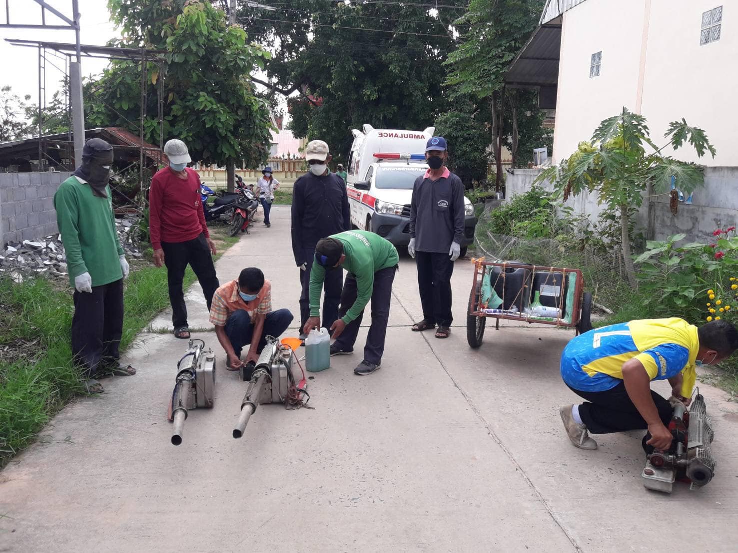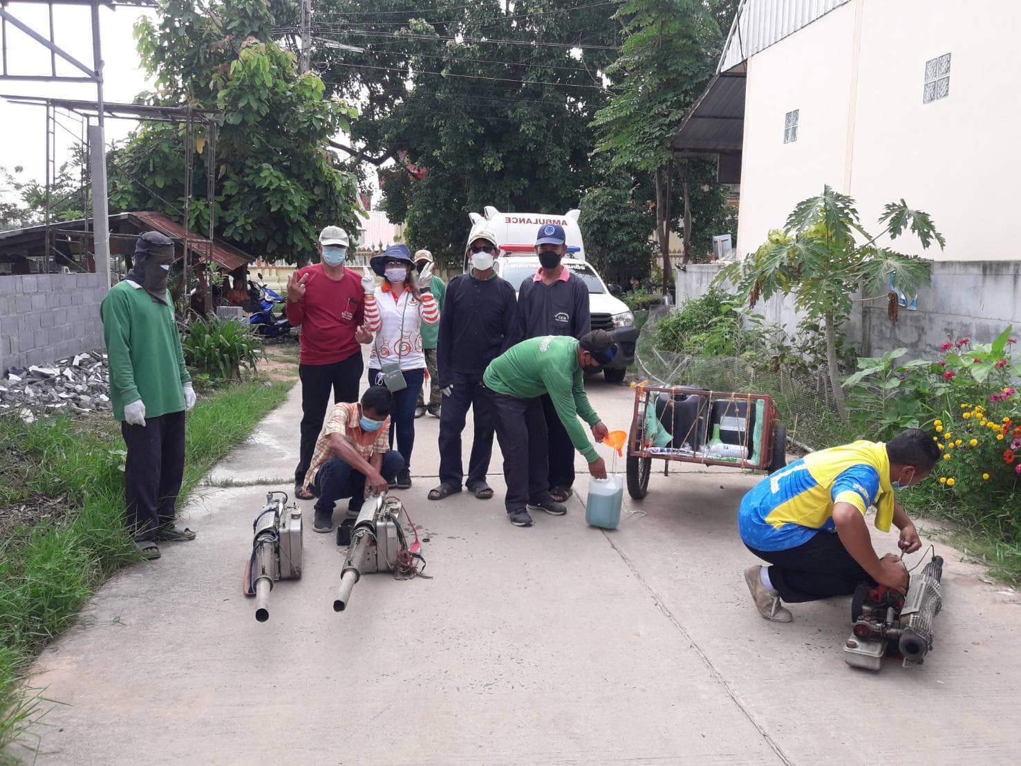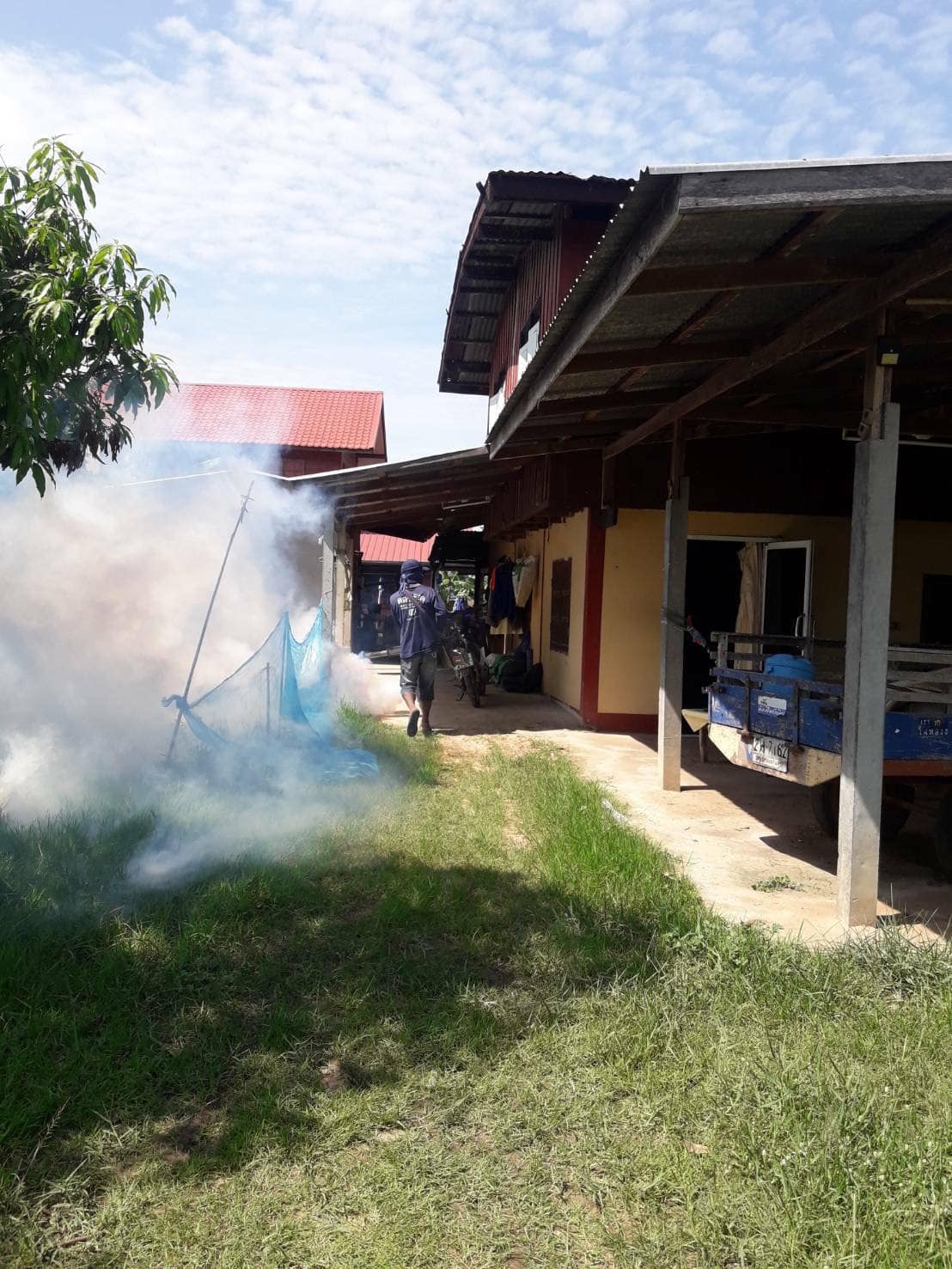 ลงพื้นที่ดำเนินการฉีดพ่นหมอกควันกำจัดยุงลาย