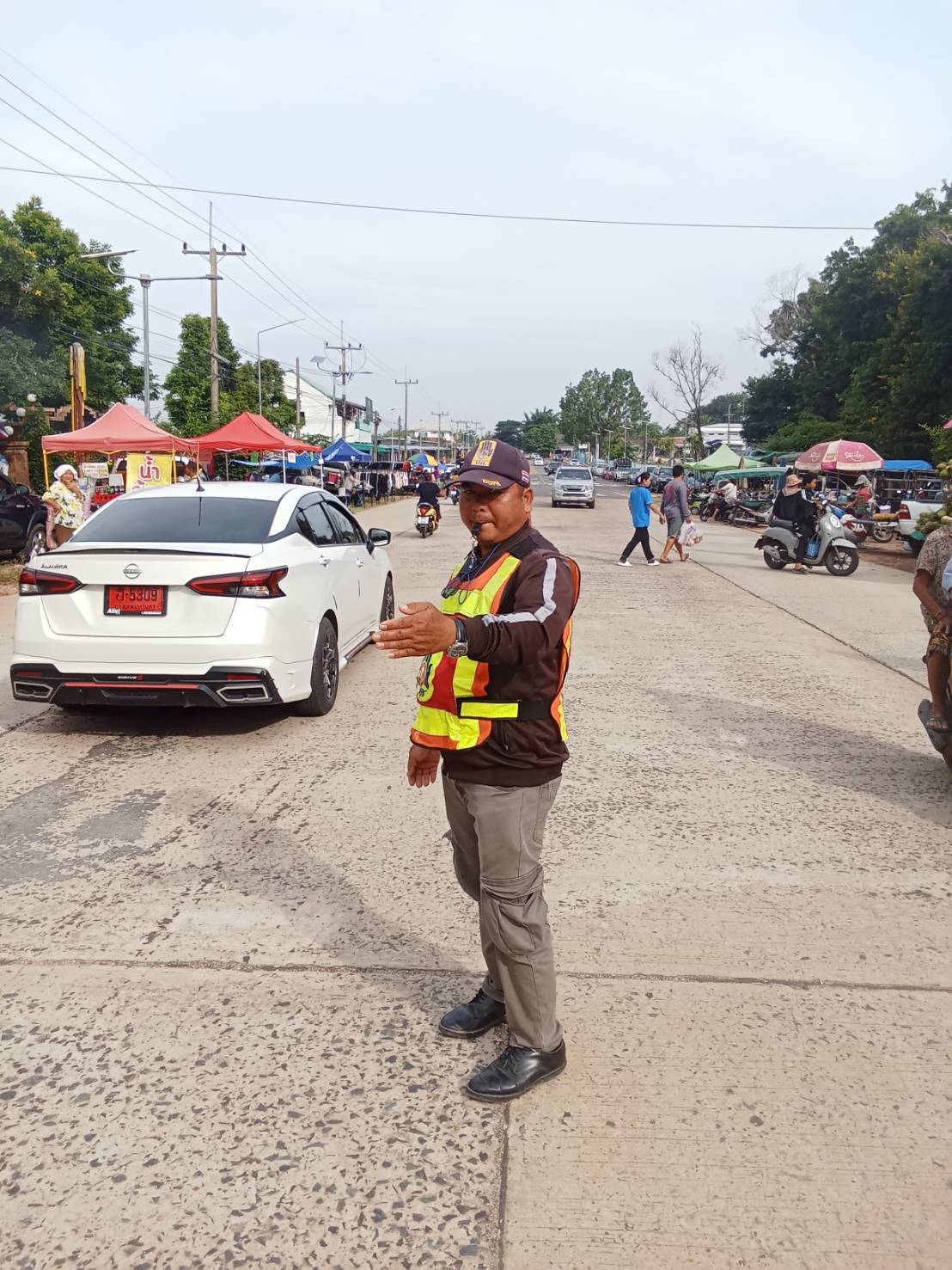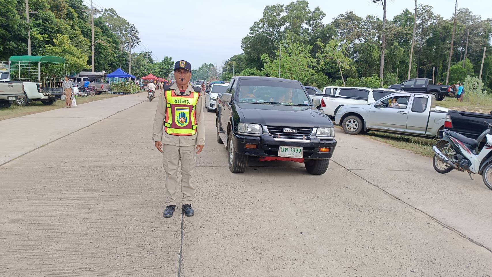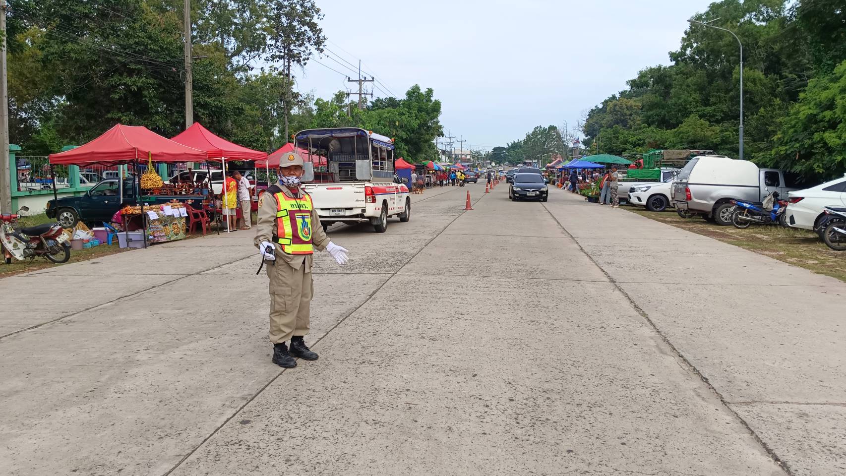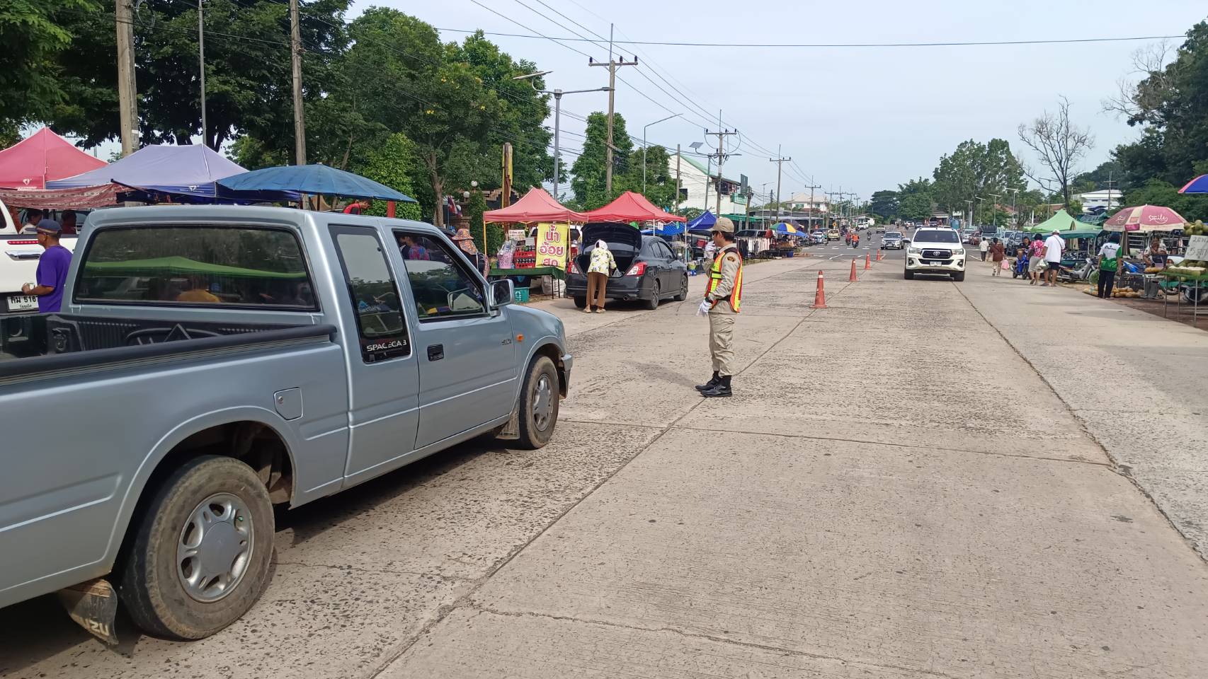 จัดระเบียบจราจรบริเวณตลาดนัดหน้าที่ว่าการอำเภอศรีสมเด็จ