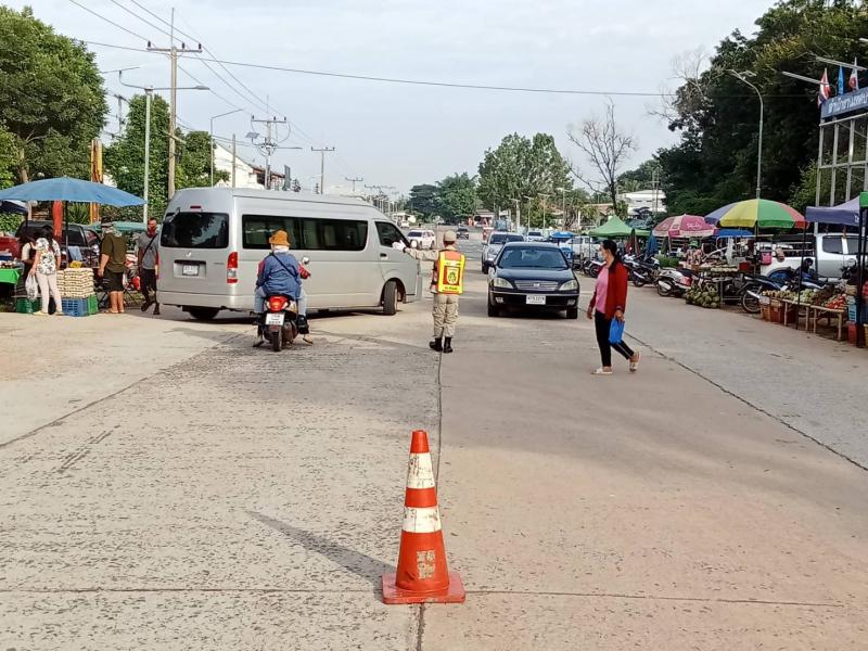 ปฏิบัติหน้าที่จัดระเบียบจราจรบริเวณทางหลวงท้องถิ่น รอ.ถ.160-01 เพื่ออำนวยความสะดวกให้กับประชาชนที่มาใช้บริการ และพ่อค้า แม่ค้า ที่นำสินค้าอุปโภคบริโภคมาจำหน่ายในตลาดนัดวันพฤหัสบดีของเทศบาลตำบลศรีสมเด็จ